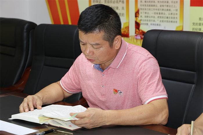 7月30日, 為加強黨員理想信念,提升黨員黨性修養,實業公司黨支部以專題會議的形式開展了“重讀經典 重溫誓言 永葆入黨初心”主題黨日活動。會議由黨支部副書記湯偉忠主持。實業公司黨支部書記柳國忠圍繞“不忘初心 牢記使命”主題,強調黨員要注重思想品德的修養,要錘煉過硬的工作作風,真心熱愛本職工作,立說立行、敢于擔當,努力爭創一流業績。