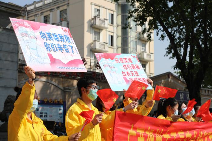 自新冠肺炎疫情發生以來,賀州市共派出33名醫護骨干和1名防疫專家緊急馳援湖北開展醫療救治工作。他們帶著賀州市委、市政府的囑托和關懷,帶著家鄉246萬人民的牽掛和關心,義無反顧投身抗擊疫情第一線。他們以信心、勇氣和醫技為疫區群眾筑起了堅強的健康長城,不負黨和人民托付,彰顯了敬佑生命、救死扶傷、甘于奉獻、大愛無疆的崇高精神,詮釋了醫護工作者的初心使命,充分展現了新時代賀州人民的責任擔當和精神風貌。