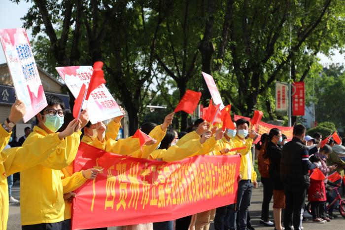 4月15日下午,賀州支援湖北醫療隊33名隊員圓滿完成工作任務凱旋而歸。賀州正贏實業公司黨支部組織全體黨員干部職工一行到賀州大道迎接英雄歸來,開展“致敬英雄,擔當作為”主題黨日活動。
