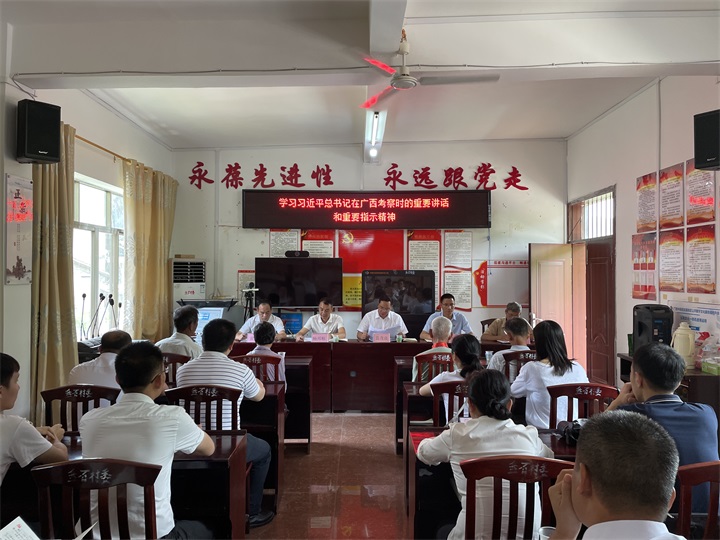 活動先召開全體黨員會議。會上,正贏實業公司黨支部副書記、總經理聶茂良傳達學習了習近平總書記視察廣西時的重要講話和重要指示精神。廣澤公司黨支部書記、副總經理楊邦樞給現場黨員上了一堂題為《中國共產黨百年的光輝歷程 百年歷史創造的時代精神》的黨史學習教育專題黨課。盤石村黨支部書記陸勇在會上介紹了盤石村幫扶工作取得的成效、產業發展情況以及鄉村振興發展中存在的困難和問題。