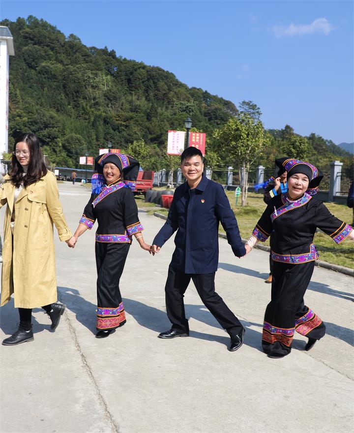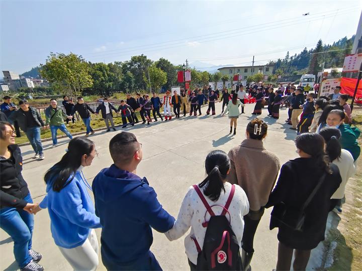 手牽手、心連心,民族團結齊奮進。在活動中,南鄉壯族山歌隊為大家演唱了古樸的壯族特色歌曲《歡迎朋友到壯鄉來》和《南鄉歡迎您》,讓大家充分感受到壯鄉人民獨特的文化魅力與熱情純樸的民俗風情。隨后,全體黨員與鄉民一同開展紅色歌曲大家唱活動,攜手齊唱《唱支山歌給黨聽》,共同跳起《愛我中華》民族團結手勢舞蹈,并體驗了壯族特色的投擲繡球等民俗文化活動,讓大家感受到了各民族相聚在一起,共敘民族團結之情的良好氛圍。
