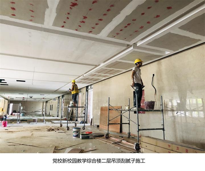火熱的天氣,高溫挑戰下,市委黨校新校園建設項目的工人們或裝模、鋪貼或焊接,全身心投入裝飾裝修工作。汗水不停地從他們額頭、兩頰往下滴,他們也僅僅是抬起手臂匆忙擦掉,繼續埋頭工作,確保工程如期交付。目前該項目完成總工程量的77%,正在進行室內裝修和設備調試工作。