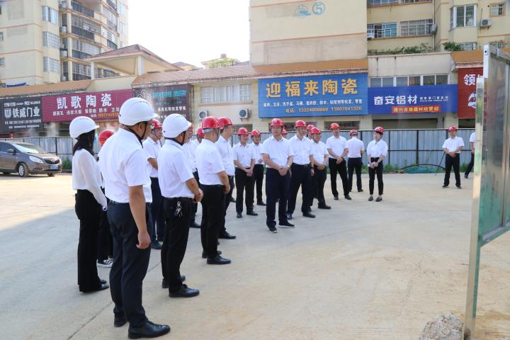當天,集團黨委書記、董事長黃俊,集團黨委副書記、總經理常瑜帶領班子成員、董事會秘書、總經理助理、各子公司主要負責人等一行19人先后到賀州火車站綜合客運樞紐項目、市委黨校新校園提質改造一期工程、城東片區城市品質提升改造工程(一期)等20個項目進行現場督辦。在項目現場,集團“履職 盡責 清廉”活動中的承諾人逐一匯報了項目建設推進情況、存在的困難和下一步工作計劃,集團領導班子成員進行現場督辦。每到一處,黃俊都詳細了解項目建設情況,現場協調解決存在的問題,并強調,要嚴格執行項目設計,加強過程監管,及時發現問題并解決問題;要按照“清廉城投”建設的工作要求,扎實推進“清廉工地”建設;針對近期的酷暑天氣,要嚴格落實安全生產各項措施,做好防暑降溫工作,合理安排作業時間,在保障安全的前提下,全力加快項目建設。