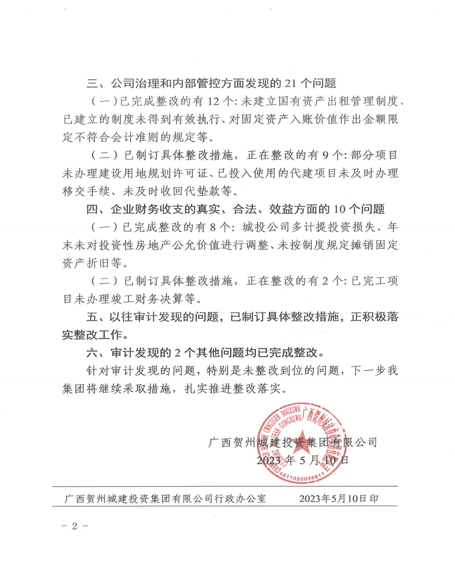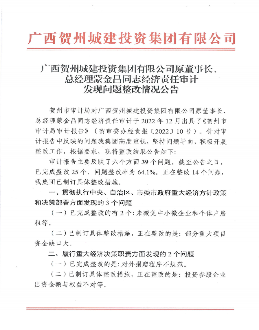 下一篇:關(guān)于賀州高級中學遷建工程三期項目結(jié)算審計發(fā)現(xiàn)問題整改情況的報告