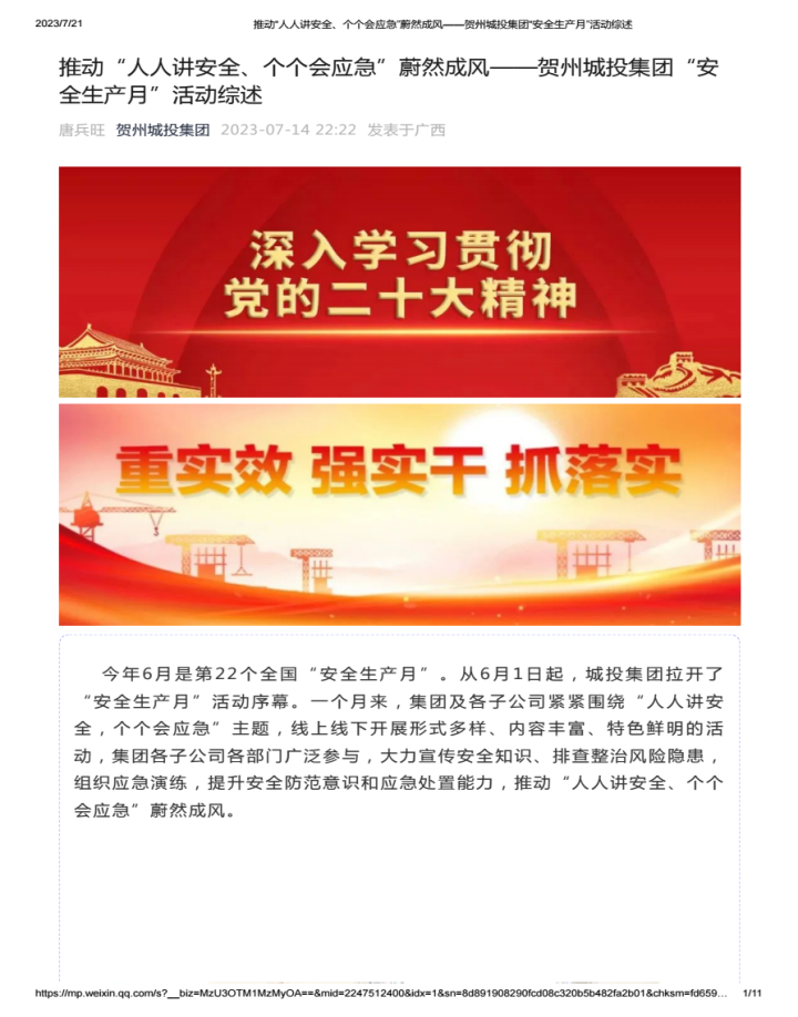 推動“人人講安全、個個會應急”蔚然成風——賀州城投集團“安全生產月”活動綜述