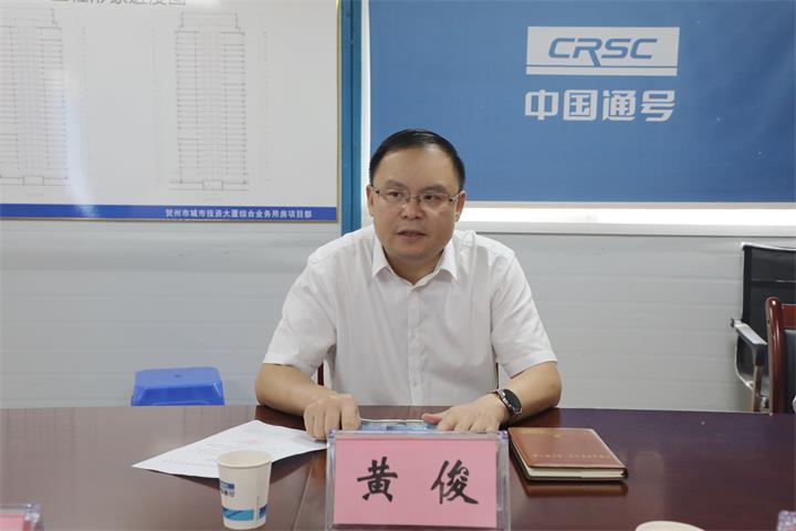 調(diào)研中,黃俊認真聽取了城投大廈項目建設(shè)、銷售、融資化債等情況匯報,詳細了解當前項目在推進及銷售等方面存在的問題,并提出指導(dǎo)性意見。黃俊指出,城投大廈項目是賀州市重點項目,是推進集團市場化轉(zhuǎn)型的重要項目,當前項目推進處于關(guān)鍵環(huán)節(jié),各參建單位要進一步提高政治站位,將城投大廈打造成賀州市地標性建筑。