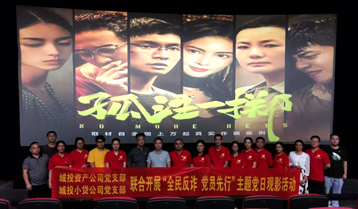 《孤注一擲》是國內首部揭露境外電信網絡詐騙全產業鏈內幕的電影。該影片取材真實的境外詐騙案例,聚焦于當下屢禁不止的網絡詐騙、網賭陷阱、招聘拐騙等跨國犯罪活動,從不同維度揭露境外詐騙全產業鏈內幕,電影的情節緊湊,場面煽情,讓人深深地感受到了詐騙的黑暗、欺騙的無恥以及被騙者的無奈,具有極高的現實意義和警示教育意義。城投資產公司和城投小貸公司借助電影《孤注一擲》開展“加強反詐宣傳,牢筑反詐心防”預防電信網絡詐騙宣傳活動,與員工共筑防范電信網絡詐騙的“防火墻”。
