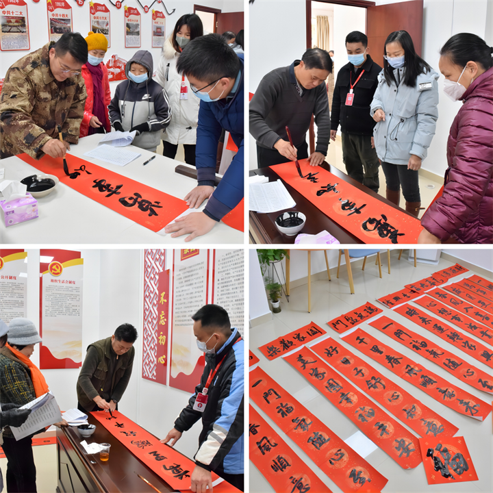 春節將至,為豐富小區業主文化生活,營造歡樂祥和的節日氛圍,1月16日上午,運營公司黨支部在賀州市城東新區公租房紅色物業示范點開展“紅色物業送春聯 墨香四溢暖人心”活動。活動邀請了多名市文聯、廣西書法家協會會員等優秀書法家走進小區,將紅紅火火和美好祝福送給廣大業主和群眾,用實際行動營造和諧、溫馨的新年氛圍。