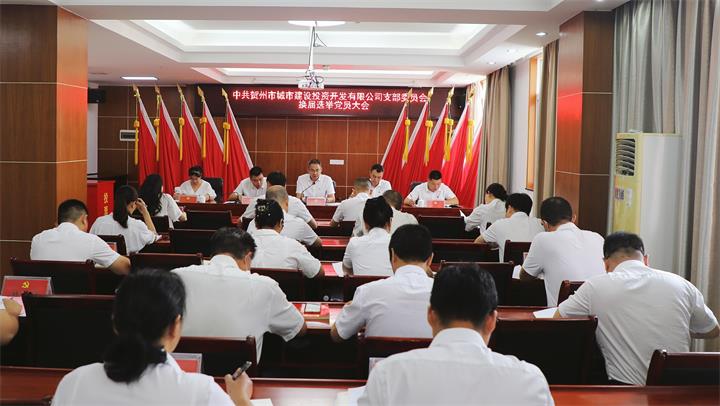 近日,賀州城投公司黨支部換屆選舉大會順利召開,公司黨支部書記、董事長蘭乾雄主持會議。支委班子、全...
